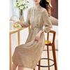 Silk dress fashion print retro seven-quarter sleeve medium and long mulberry silk dress