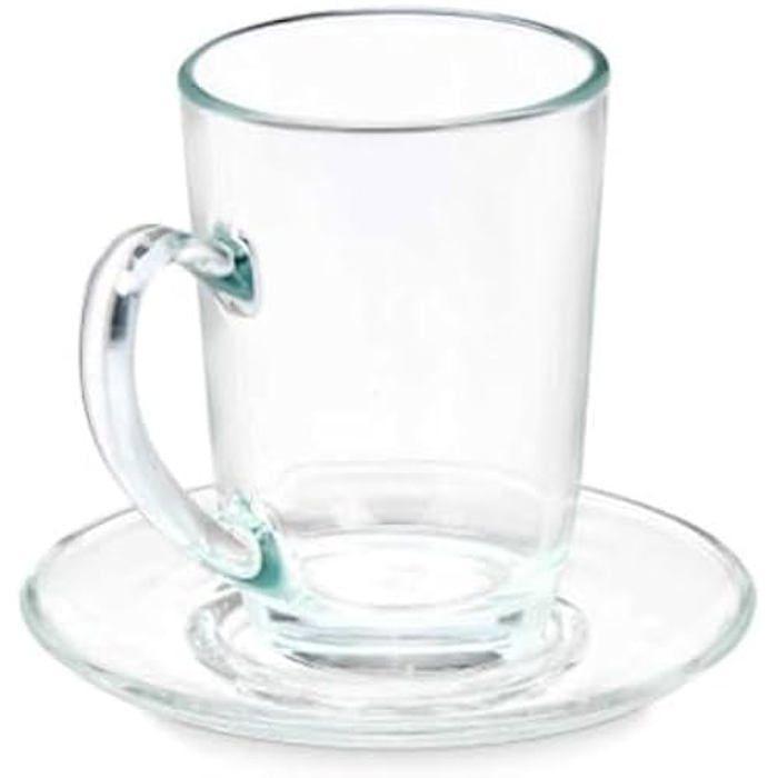 Tasses avec soucoupe - VIVALTO - Lot de 6 - Verre transparent - 200 ml - Multicolore