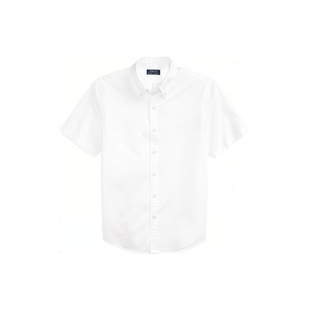 Polo Ralph Lauren SS22 Jednobarevná lněná keprová košile s krátkým rukávem Pánské košile Bílá MNPOWOV1N820464