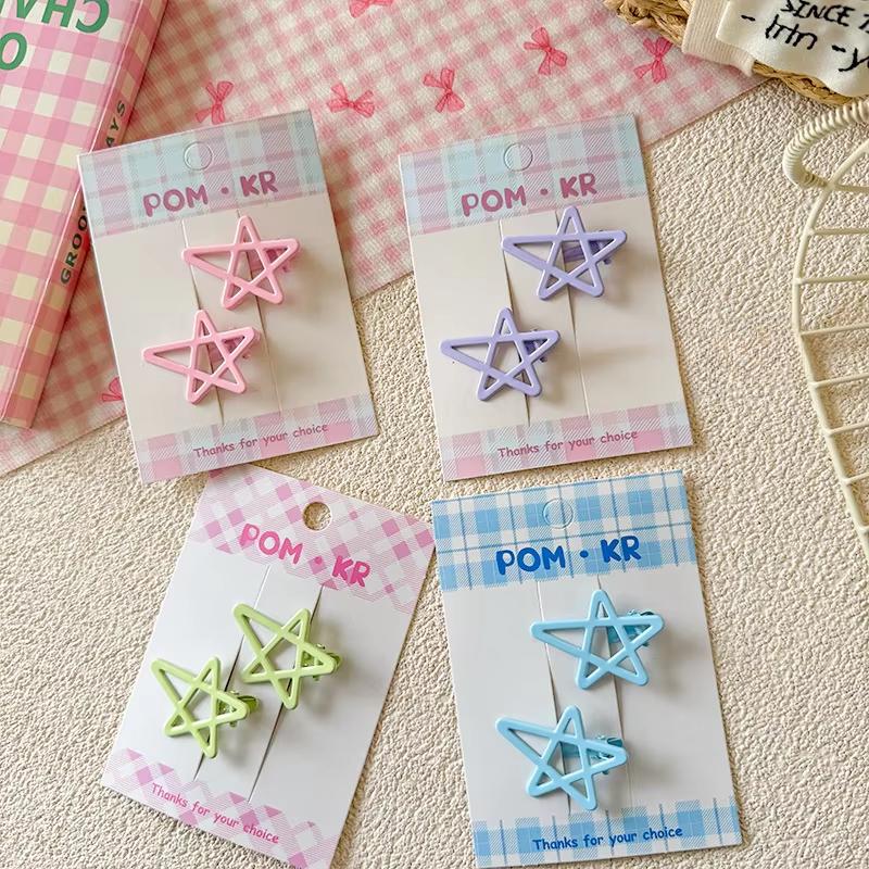 2pcs/set Sweet Korean Fashion Star Hair Clip for Kids Girl Candy Color Children's Bang Side Clip Cute Hair Accessories Headwear