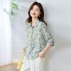 Summer new fashion temperament printed lapel silk short-sleeved shirt mulberry silk shirt shirt shirt top