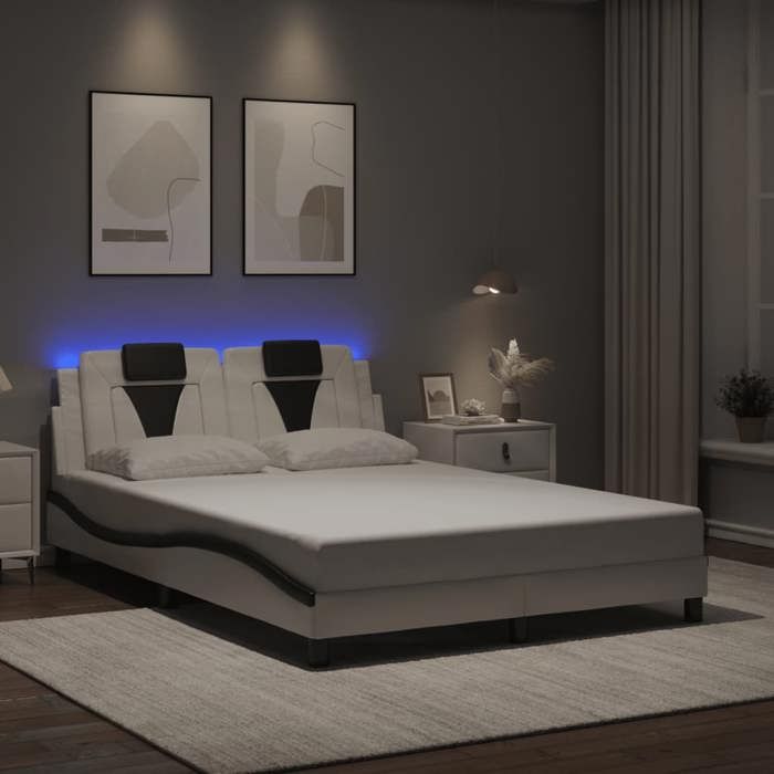 VidaXL Cadre de Lit avec Lumières LED, Lit Rembourré avec Coussin, Lit Double, Lit Adulte Chambre, Moderne, Blanc Noir 3214028