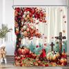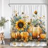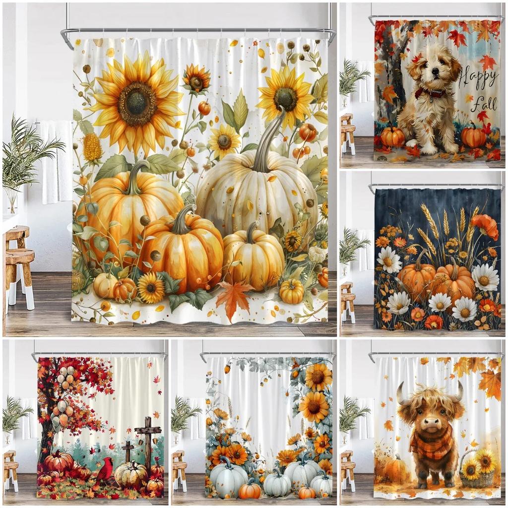 Cartoon shower curtain highland cattle harvest season pumpkin sunflower farmhouse bathroom decoration with hook shower curtain
