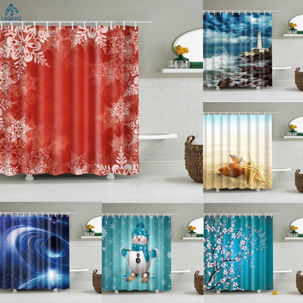 Christmas Shower Curtain Shell Snowman Flower Lighthouse Shower Curtains Bathroom Curtain Frabic Waterproof Polyester with Hooks