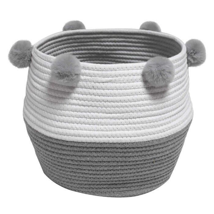 Panier - SUZY - Bicolore Gris/Blanc - Coton - 28x23 cm - Avec Pompons