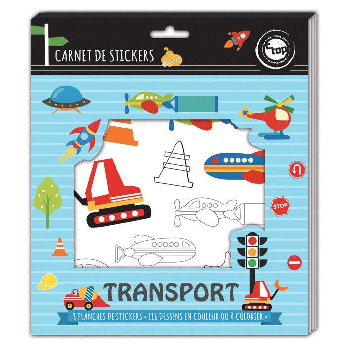 Stickers à colorier 3 à 14 cm Transports 8 feuilles