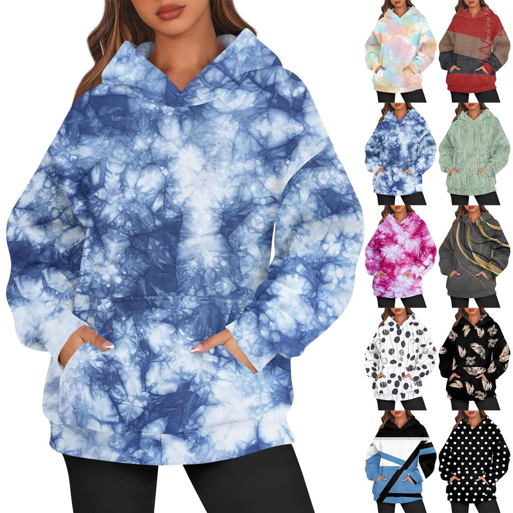 Dámské nadměrné mikiny s fleecovou kapucí, pulovry s dlouhým rukávem, outfity s kapsou