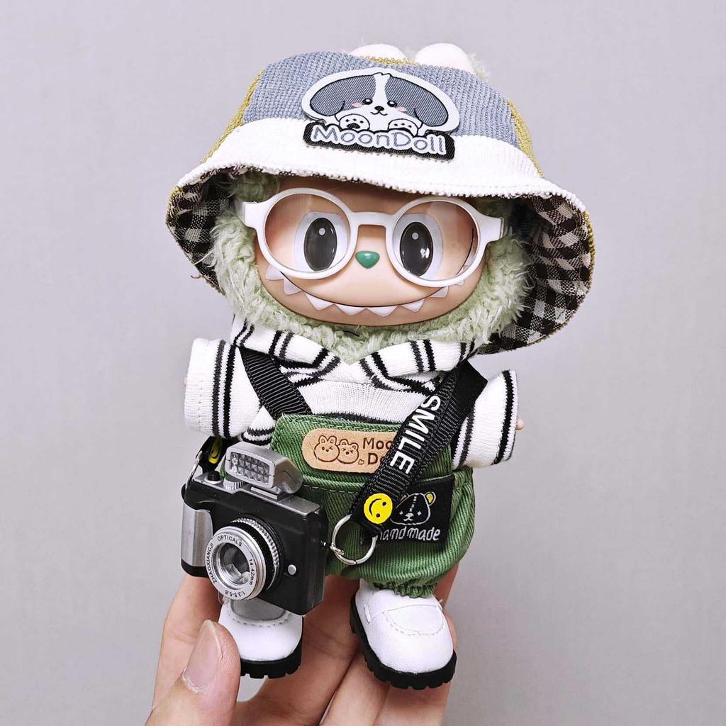 Oblečení pro panenku Labubu Roztomilá psí čepice Overalový oblek Módní oblečení pro panenku