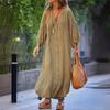Letní nový styl dámská bavlněná a lněná košile ležérní s dlouhým rukávem kardigan šaty výstřih do V jednobarevné volné plážové sukně