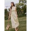 Summer vacation style bow strap waist thin sleeveless neck long dress