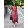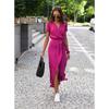 Holiday Polka Dot Print Strap Waist V-neck Mid-length Short-sleeved Dress