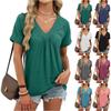 Spring And Summer New Short-sleeved Solid Color Pleated V-neck Striped T-shirt Tops For Women