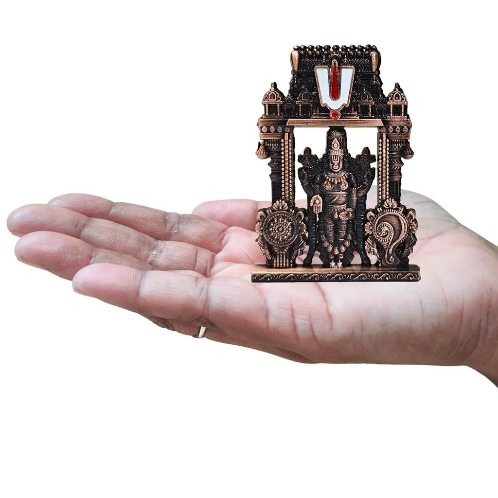 Idol Tirupati Balaji na palubní desku auta | Idol Venkateswary na palubní desku auta Design 3, Kov, 1 kus (Měděná barva)