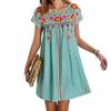 Women's Dress Casual Round Neck Vintage Floral Print Short-sleeved Dress