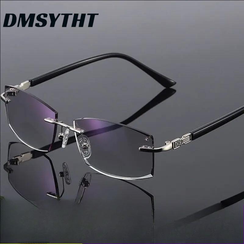 Diamond Trimming Rimless Square Reading Eyewear Far Near Dual Purpose Women Eyeglasses Metal Frame Antifatigue Men Glasses