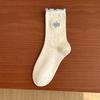 Černé ponožky s krajkou na uších pro dívky, roztomilá kreslená výšivka, punčochy ve školním stylu, nápady, gázové štítky, froté ponožky