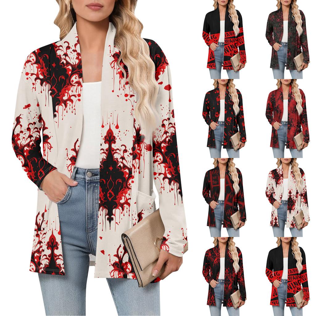 Women's Long Sleeve Cardigan V Neck Fashion Halloween Printed Shirt Lightweight Casual Loose Thin Cardigans With Pockets