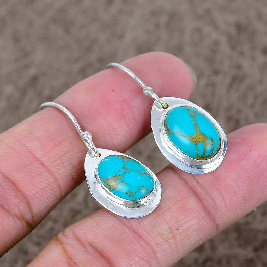 Santa Rosa Turquoise Gemstone 925 Sterling Silver Jewelry Earring 1.42" KKG-643