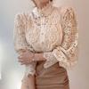 Dámské letní topy s krajkovým očkem pro ženy Bílé letní košile velkých velikostí tunika s dlouhým rukávem ležérní halenky se zapínáním na knoflíky a límečkem