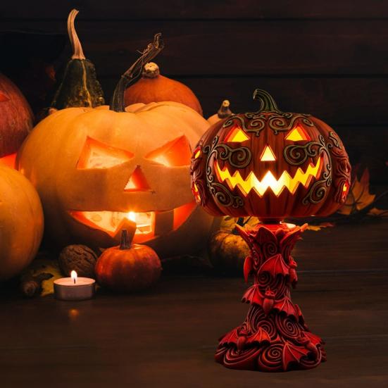 Vylepšete svou halloweenskou atmosféru naším dýňovým světlem, vyrobeným z prémiových pryskyřičných a plastových materiálů.. Tento odolný a opakovaně použitelný dekorativní prvek pozvedne každý prostor svým svátečním kouzlem.