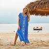Evropsko-americký bavlněný vyšívaný plážový župan: Dlouhé šaty s ochranou proti slunci a přehoz na bikiny