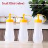 Sada 3 průhledných stlačovacích lahví s úzkým hrdlem na kečup, med, smetanu, salátový dresink a ústřicovou omáčku.