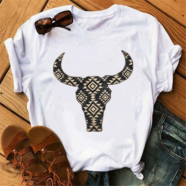 Vintage Creative Casual Bull Tau Graphic Women's T-Shirt 90S Goth Summer O-Neck Blouse Short Sleeve Female Tops Kpop Y2K Clothes