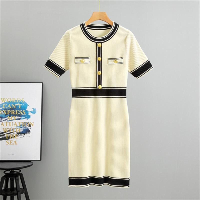Women's summer knitted new short sleeved high-end fashion dress Slimming temperament, hip hugging short skirt