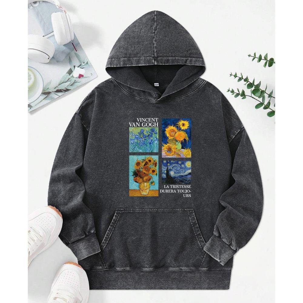 Kreativní tisk olejomalby slunečnice Dámská praná mikina s kapucí Podzimní bavlněné mikiny Volný střih s kapsou Módní pulovr