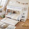 Hausbett Kinder, Hochbett 90x200 cm, Etagenbett Holz, 3 Betten, Rausfallschutz, Lattenrost, Jugendzimmer, Treppe, Spielbett, Weiß