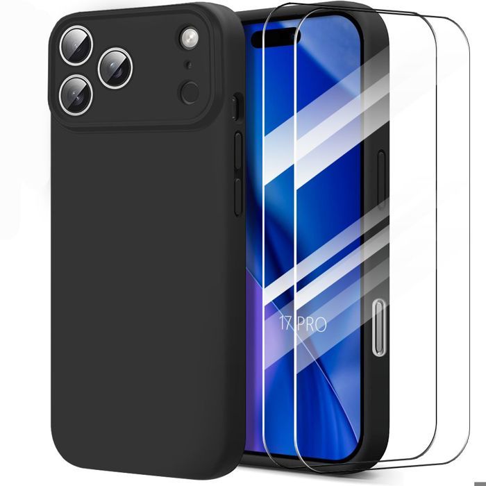 Ochranný kryt - BOOLING - pro iPhone 17 Pro - Silikonový Nárazuvzdorný Odolný proti poškrábání - Černý - 2 Skla