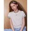Polka Dot Bow Pullovers Women's Lace Patchwork Summer Slim Short Sleeve French Style Gentle O-Neck T-shirts New
