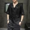 2024 New Summer Chinese Style Dark Flower Ultra-thin Ice Silk Short Sleeved Shirt China-Chic Oversize Loose Casual Men's T-shirt