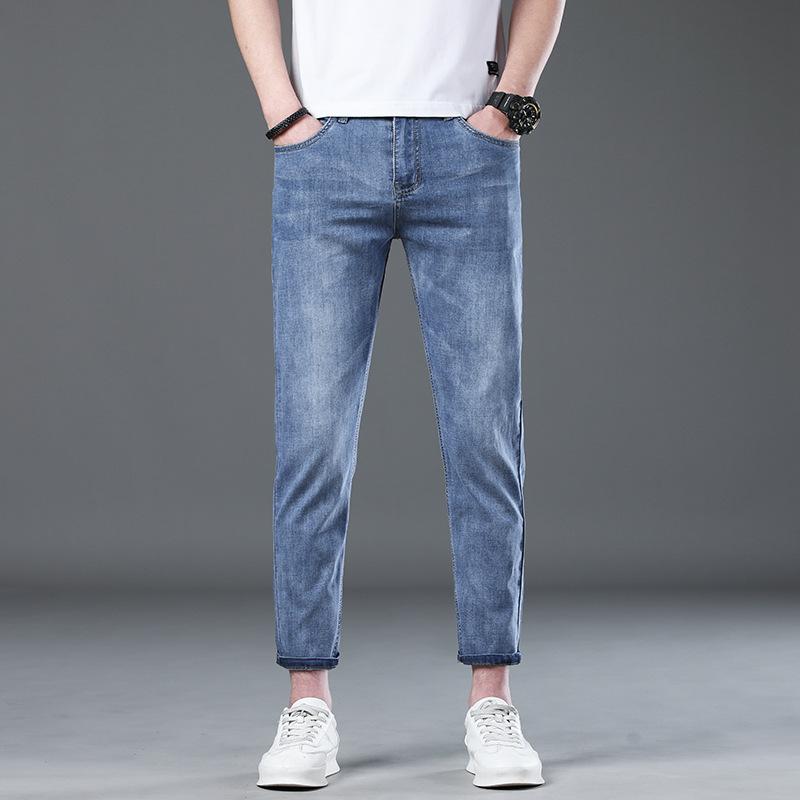 Summer Light-colored Thin Nine-point Pants Slim Straight-leg Pants Korean Style Jeans Men