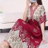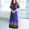 Women Summer Casual Elegant Retro Bohemian Style V-neck Elastic Waist Large Swing Printed Long Skirt Autumn Summer Dress