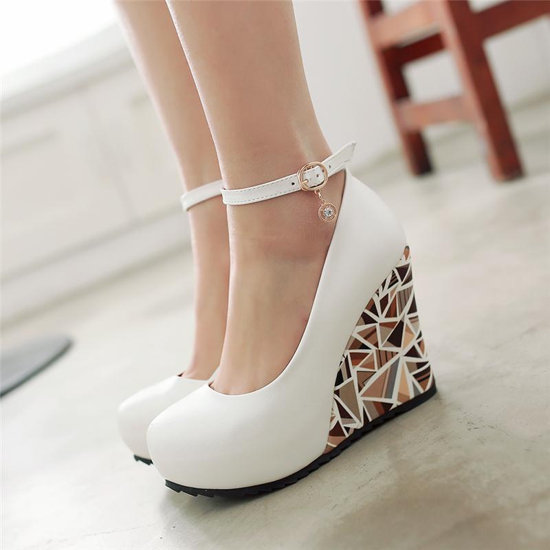 Módní platformové klínky Boty na vysokém podpatku Ležérní kotníkové pásky Lodičky Dámské Bílé Černé Klínek Svatba Kancelářské boty Pro ženu