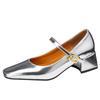 Dámské boty Mary Janes s nízkým podpatkem 2025 Nová móda Stříbrné Béžové Boty na párty a svatbu s krátkým podpatkem Dámské lodičky Velká velikost 45