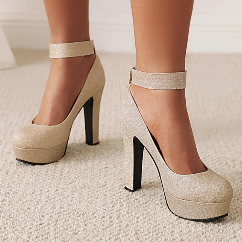 Platform Women's High Heels Pumps Shoes Luxury Sequined Gold Silver Black Block Heeled Party Wedding Shoes Female Large Size