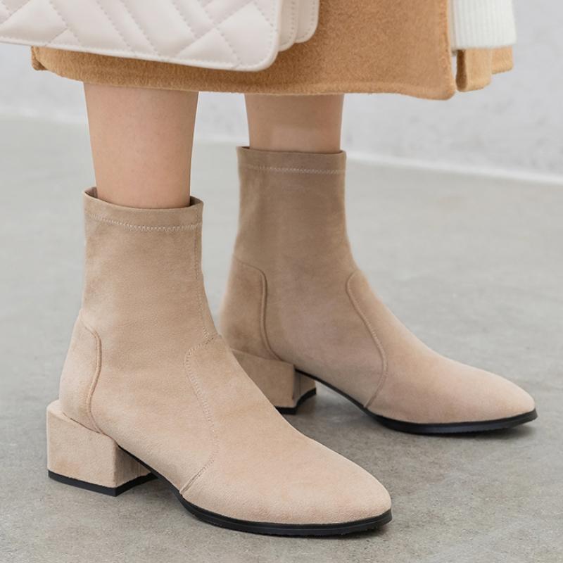 Elegant Ankle Boots for Women 2024 Autumn Winter Flock Black Khaki Short Boot Low Heels Party Shoes Ladies Brand Big Size 45