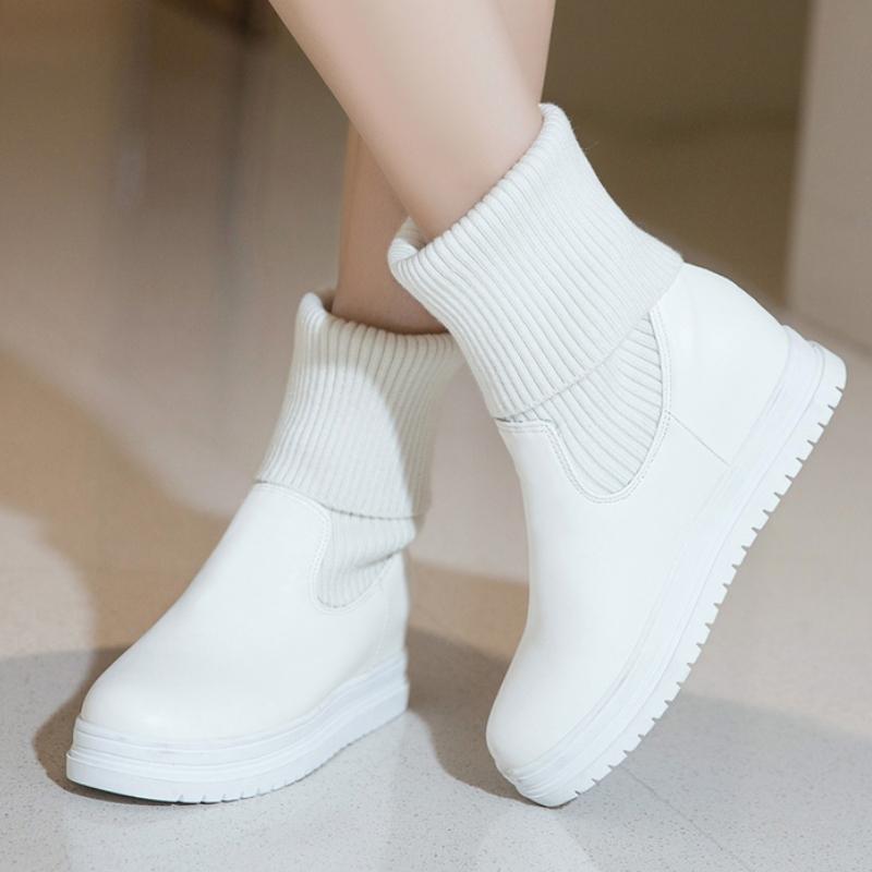 Elastic Socks Ankle Boots Women Winter Autumn Shoes White Comfortable Height Increasing Short Boots Girls Waterproof