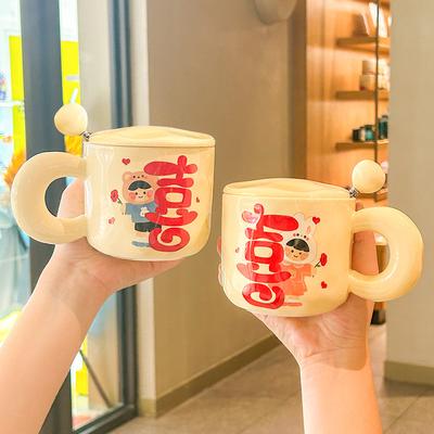 Roztomilý sváteční hrnek vysoké hodnoty s víčkem lžičkou pár hrnků svatební dar keramický hrnek na pití hrnek na kávu