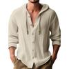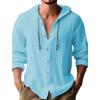 Casual Solid-Color Hooded Long-Sleeved Button-Up T-Shirt In Cotton and Linen Blouses