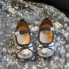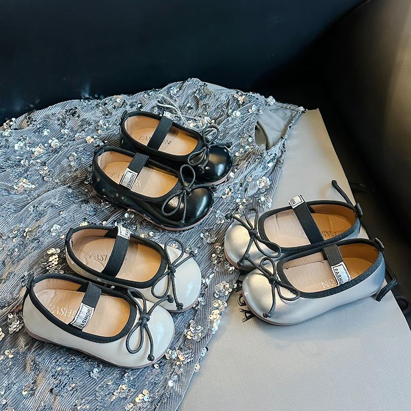 Dívčí kožené boty nazouvací princeznovské baletní taneční boty pro děti jednoduchá mašlička ins trendy 2025 nové dívčí boty na vystoupení černé
