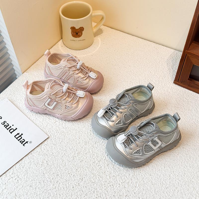 Kids Sports Shoes Mesh Breathable Girls Casual Shoes Pull Rope 2025 New Fashion Children Princess Shoes Non-slip Ins Trend Sweet