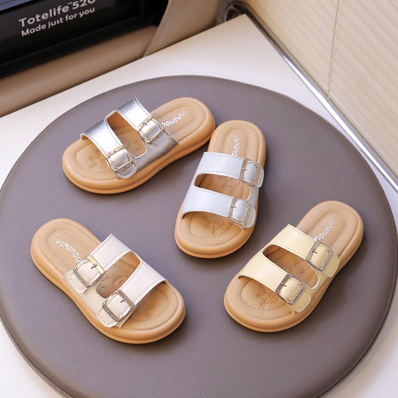 Children Slippers Outdoors Retro Kids Beach Shoes Soft Sole Korean Style 2025 Summer New Girls Sandals Elegant Chic Sweet Chic