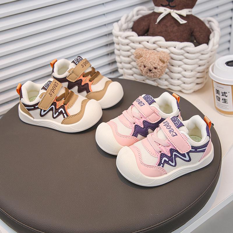 Baby Walking Shoes Mesh Breathable Kids Sports Shoes Toes Capped Soft Sole 2025 New Fashion Toddler Flats Round Toes Size 18-29