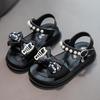 Girls Beach Shoes Non-slip Soft Sole Kids Princess Shoes Cute Cat Sweet Bows 2025 Summer New Children Sandals Beading Elegant