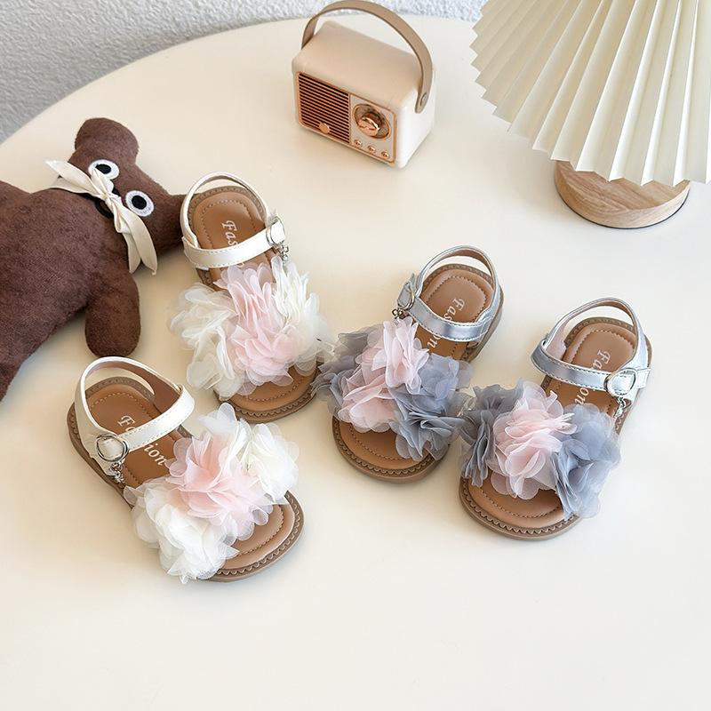 Girls Sandals Non-slip Soft Sole Kids Princess Shoes Lace Flowers Mixed Color 2025 Summer New Children Beach Shoes Fashion Sweet