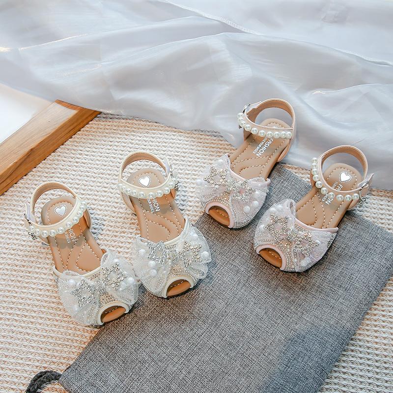 Girls Sandals Sweet Lace Bows Kids Princess Dance Shoes Peep Top Sandals 2025 Summer New Children Dress Shoes for Wedding Party