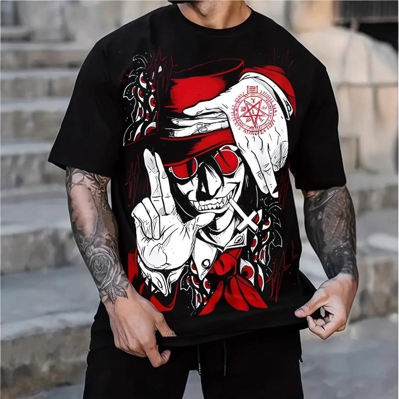 Letní 3D digitálně potištěné tričko s trendy značkovým vzorem lebky, pohodlného volného střihu, s krátkým rukávem a kulatým výstřihem pro muže